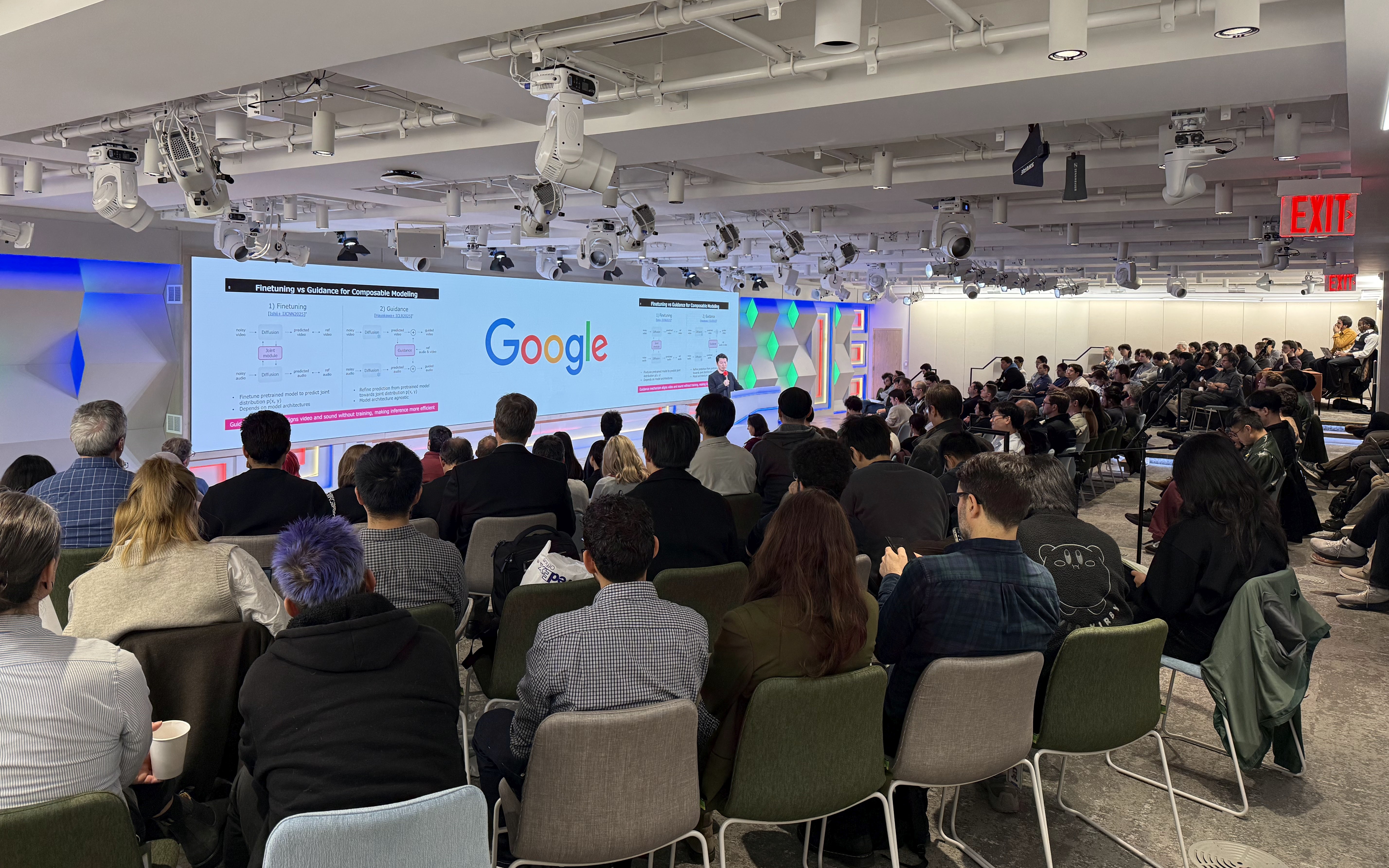 MERL Speech and Audio Team's Yoshiki Masuyama presented a well-received overview of the team's recent work on "Neural Fields for Spatial Audio Modeling". His talk highlighted how neural fields are reshaping spatial audio research by enabling flexible, data-driven interpolation of head-related transfer functions and room impulse responses. He also discussed the integration of sound-propagation physics into neural field models through physics-informed neural networks, showcasing MERL’s advances at the intersection of acoustics and deep learning.